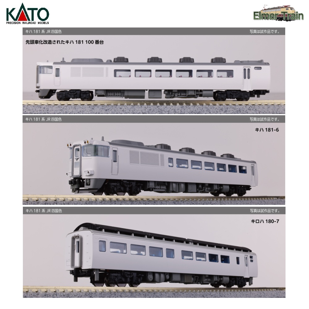 ④「しおかぜ・いしづち」8両セットには先頭車化改造されたキハ181 100番台を収録。車端部のトイレ・洗面所窓が閉塞され、機器室が短く機器室に隣接した小窓なし、前頭 部に雨トイのない形態を再現
